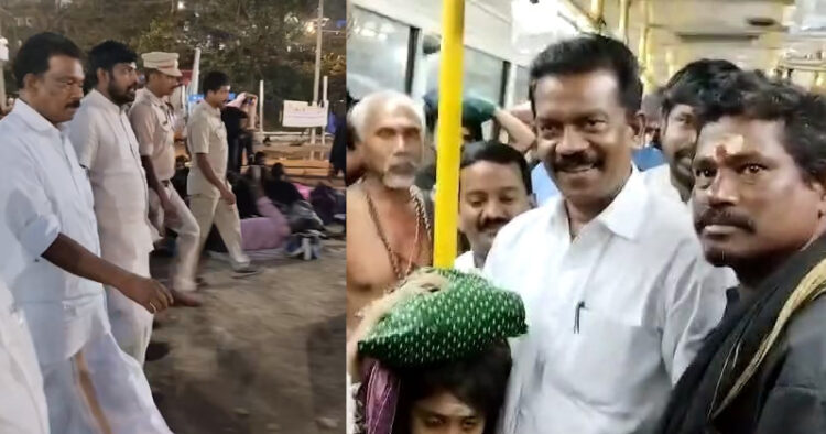പമ്പ: ശബരിമലയില്‍ ഇതര സംസ്ഥാനക്കാരായ ഭക്തര്‍ നേരിടുന്ന ദുരിതം കേട്ടറിഞ്ഞ് ബിജെപി നേതാവ് കുമ്മനം രാജശേഖരന്റെ നേതൃത്വത്തിലുള്ള പ്രതിനിധി സംഘം ശബരിമല സന്ദര്‍ശിക്കുന്നു എന്ന വാര്‍ത്തയറിഞ്ഞയുടന്‍ നവകേരള സദസ്സ് വിട്ട് ദേവസ്വം മന്ത്രി കെ രാധാകൃഷ്ണന്‍ ഓടിപ്പാഞ്ഞെത്തി. നവകേരള സദസിന്റെ കോട്ടയത്തെ പരിപാടികൾ ഉപേക്ഷിച്ചാണ് ബിജെപി നേതാക്കൾ ശബരിമലയിലെത്തുന്നതിനു മുന്നേ മന്ത്രി പമ്പയിലെത്തിയത്. കഴിഞ്ഞ ദിവസങ്ങളിൽ അയ്യപ്പഭക്തര്‍ നേരിടുന്ന ബുദ്ധിമുട്ടുകളും ദുരിതങ്ങളും വിവിധ വാര്‍ത്താ മാധ്യമങ്ങളിലൂടെ പുറത്തുവന്നപ്പോഴും മുഖ്യമന്ത്രിയോ ദേവസ്വം മന്ത്രിയോ പമ്പയിലോ സന്നിധാനത്തോ എത്തിനോക്കിയിരുന്നില്ല.