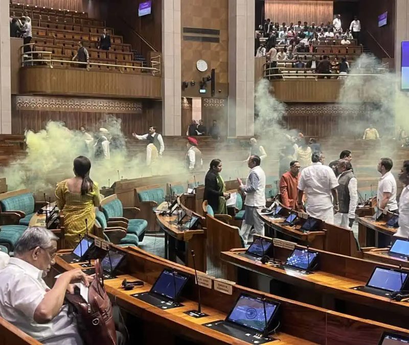 സീറോ അവറിൽ സന്ദർശക ഗ്യാലറിയിൽ നിന്ന് ലോക്സഭാ ചേമ്പറിലേക്ക് ചാടിയ ശർമ ഉൾപ്പെടെ രണ്ട് പേർ ക്യാനിസ്റ്ററുകളിൽ നിന്ന് മഞ്ഞ വാതകം പുറന്തള്ളുകയും മുദ്രാവാക്യം വിളിക്കുകയും ചെയ്തു. രണ്ട് പ്രതിഷേധക്കാരും ഇപ്പോൾ ഡൽഹി പോലീസിന്റെ കസ്റ്റഡിയിലാണ്.