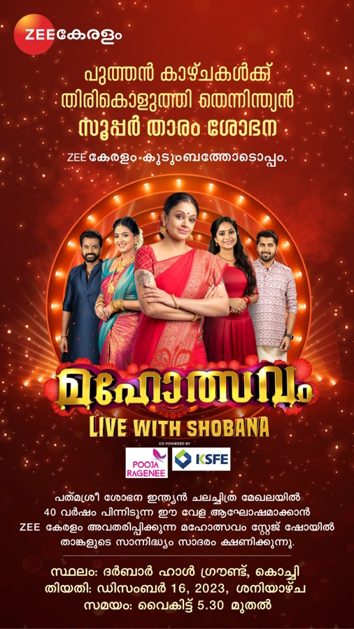 ഏറെ പ്രിയങ്കരിയായ പത്മശ്രീ ശോഭന സീ കേരളം കുടുംബവുമായി ഒത്തു ചേരുന്നതിന്റെ ആഘോഷം കൂടിയാണ് ശനിയാഴ്ച അരങ്ങേറുന്ന മഹോത്സവം. സീ കേരളം മഹോത്സവം പരിപാടിയിലേക്കുള്ള പ്രവേശനം തികച്ചും സൗജന്യമാണ്.