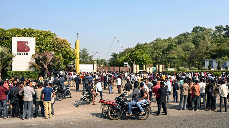 നാഗ്പൂരിൽ നിന്ന് 60 കിലോമീറ്റർ അകലെ ബസാർഗാവിലുള്ള സോളാർ ഇൻഡസ്ട്രീസ് ഇന്ത്യ ലിമിറ്റഡിന്റെ കാസ്റ്റ് ബൂസ്റ്റർ യൂണിറ്റിൽ രാവിലെ 9 മണിയോടെയാണ് സ്ഫോടനം നടന്നതെന്ന് പോലീസ് അധികൃതർ അറിയിച്ചു. സ്ഫോടനം നടക്കുമ്പോൾ 12 തൊഴിലാളികൾ സ്ഥലത്തുണ്ടായിരുന്നു.