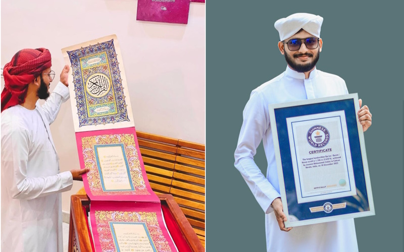 ഏറ്റവും ദൈർഘ്യമേറിയ കൈയ്യക്ഷര ഖുർആനിന്റെ ഗിന്നസ് റെക്കോർഡ് സ്വന്തമാക്കി മലയാളി വിദ്യാർത്ഥി