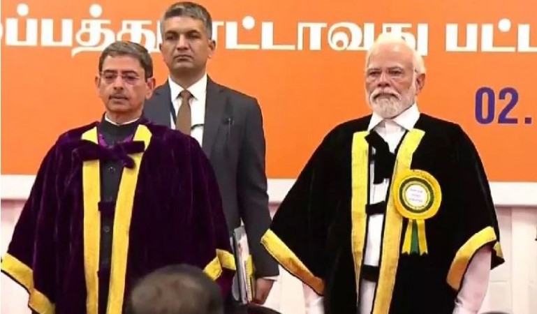 തിരുച്ചിറപ്പള്ളിയിലെ ഭാരതിദാസൻ സർവകലാശാലയുടെ 38-ാമത് ബിരുദദാന ചടങ്ങിൽ പ്രധാനമന്ത്രി നരേന്ദ്ര മോദി പങ്കെടുത്തു. അദ്ദേഹത്തോടൊപ്പം തമിഴ്നാട് ഗവർണർ ആർഎൻ രവി, മുഖ്യമന്ത്രി എംകെ സ്റ്റാലിൻ എന്നിവരും ചടങ്ങിൽ പങ്കെടുത്തു.