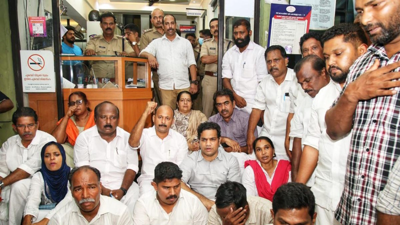 11 കോൺഗ്രസ് നേതാക്കളും മറ്റ് 75 പേരും തിങ്കളാഴ്ച രാത്രി 7.30 മുതൽ പാലാരിവട്ടം പോലീസ് സ്റ്റേഷനും അതിനു മുന്നിലെ റോഡും ഉപരോധിക്കുകയും മുദ്രാവാക്യം വിളിക്കുകയും ഭീഷണിപ്പെടുത്തുകയും ചെയ്തതായി എഫ്ഐആറിൽ പറയുന്നു. ഇത് ജനങ്ങൾക്കും വാഹനയാത്രക്കാർക്കും ബുദ്ധിമുട്ടുണ്ടാക്കുകയും പൊതുഗതാഗതം തടസ്സപ്പെടുകയും ചെയ്തു.