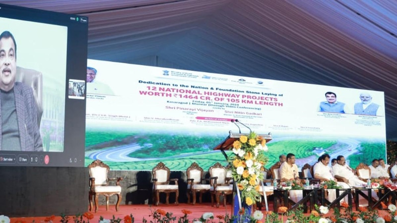 നാഷണൽ ഹൈവേ അതോറിറ്റി ഓഫ് ഇന്ത്യ സംഘടിപ്പിച്ച ഒരു പരിപാടിയിൽ, ഭാരത് പരിയോജന പദ്ധതി പ്രകാരം 1,464 കോടി രൂപ ചെലവ് വരുന്ന 105 കിലോമീറ്റർ ദൈർഘ്യമുള്ള ഒമ്പത് ദേശീയ പാത പദ്ധതികൾക്ക് അദ്ദേഹം ഫലത്തിൽ മൂന്ന് പദ്ധതികളുടെ ഉദ്ഘാടനവും തറക്കല്ലിടുകയും ചെയ്തു. കാസർകോട് താളിപ്പടപ്പ് മൈതാനത്താണ് പരിപാടി സംഘടിപ്പിച്ചത്.