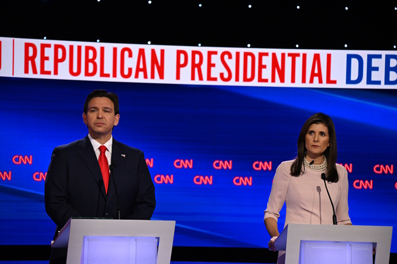 അയോവ: ഫ്ലോറിഡ ഗവർണർ റോൺ ഡിസാന്റിസും മുൻ യുഎൻ പ്രതിനിധി നിക്കി ഹേലിയും അയോവയിൽ 2024 ലെ യുണൈറ്റഡ് സ്റ്റേറ്റ്സ് പ്രസിഡന്റ് തിരഞ്ഞെടുപ്പിന്റെ അഞ്ചാമത്തെ റിപ്പബ്ലിക്കൻ പാർട്ടി ചർച്ചയിൽ ഉക്രെയ്ൻ ചെലവുകൾ, അതിർത്തി നയം, ഗാസ യുദ്ധം എന്നിവയിൽ പരസ്പരം പൊട്ടിത്തെറിച്ചു.