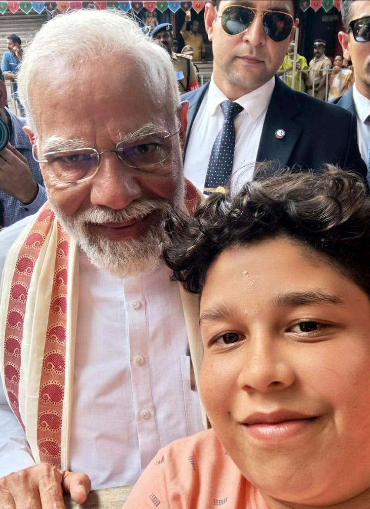മോദി അവനെ മുറുകെ പിടിച്ച് പറഞ്ഞു: “അതിൽ ക്ലിക്ക് ചെയ്യുക”. തുടർന്ന് പ്രധാനമന്ത്രി കുട്ടിയെ ആശീർവദിക്കുകയും കുടുംബാംഗങ്ങളുമായി സംസാരിക്കുകയും അവർക്കൊപ്പം ഫോട്ടോ എടുക്കുകയും ചെയ്തു.