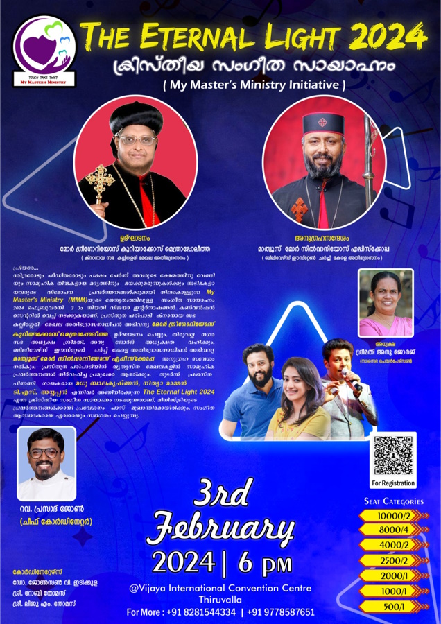 ക്നാനായ സഭ കല്ലിശ്ശേരി മേഖല അതിഭദ്രാസനാധിപൻ മോർ ഗ്രീഗോറിയോസ് കുറിയാക്കോസ് മെത്രാപ്പോലീത്ത ഉദ്ഘാടനം ചെയ്യും. തിരുവല്ല നഗരസഭ ചെയർപേഴ്സൺ അനു ജോർജ് അദ്ധ്യക്ഷത വഹിക്കും. ബിലീവേഴ്സ് ഈസ്റ്റേൺ ചർച്ച് കേരള അതിഭദ്രാസനാധിപൻ മാത്യൂസ് മോർ സിൽവാനിയോസ് എപ്പിസ്ക്കോപ്പ അനുഗ്രഹ പ്രഭാഷണം നടത്തും. വ്യത്യസ്ത മേഖലകളിൽ സാമൂഹിക പ്രവർത്തനങ്ങൾ നിർവഹിക്കുന്ന പ്രമുഖരെ ആദരിക്കും. തുടർന്ന് പ്രശസ്ത പിന്നണി ഗായകരായ മധു ബാലകൃഷ്ണൻ, നിത്യാ മാമ്മൻ, ടി.എസ്. അയ്യപ്പൻ എന്നിവർ അണിനിരക്കുന്ന ക്രിസ്തീയ സംഗീത സായാഹ്നം നടക്കും.