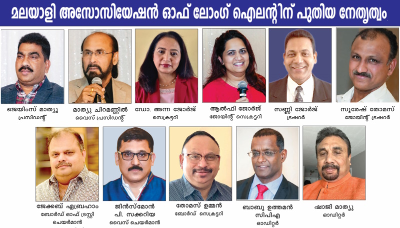 അമേരിക്കയിലെ മലയാളി സാന്നിധ്യംകൊണ്ട് പ്രമുഖമായ മലയാളി അസോസിയേഷന് ഓഫ് ലോംഗ് ഐലന്റിന് അതിന്റെ അടുത്ത പ്രവര്ത്തന വര്ഷങ്ങളില് പുതിയ നേതൃത്വത്തിന് ഭാരിച്ച ചുമതലകള് നിറവേറ്റാനുണ്ടെന്ന് സ്ഥാനമേറ്റെടുത്ത ജെയിംസ് മാത്യു ഓര്മിപ്പിച്ചു. സംഘടന ഈ വര്ഷത്തെ ക്രിസ്മസ്-ന്യൂഇയര് ആഘോഷം വളരെ വിപുലമായി രീതിയില് ആഘോഷിക്കപ്പെട്ടു.