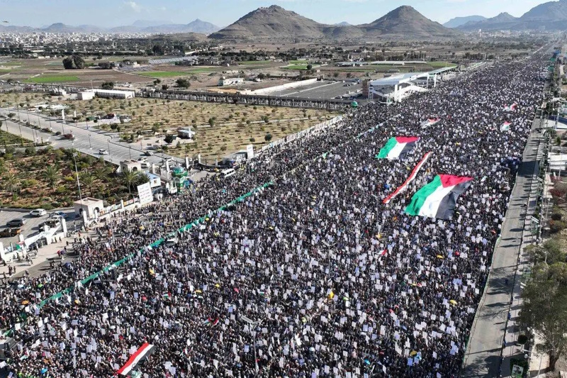 നിലവിൽ ഉപരോധത്തിലിരിക്കുന്നതും ഒക്ടോബർ 7 മുതൽ തീവ്രമായ ഇസ്രായേൽ സൈനിക ആക്രമണത്തിന് വിധേയമായിക്കൊണ്ടിരിക്കുന്നതുമായ ഗാസയിലെ ഫലസ്തീൻ ജനതയ്ക്ക് പിന്തുണ പ്രഖ്യാപിച്ച് ആയിരക്കണക്കിന് യെമനികൾ വെള്ളിയാഴ്ച ഹൂത്തികളുടെ നിയന്ത്രണത്തിലുള്ള മേഖലയിലുടനീളം ബഹുജന റാലികൾ നടത്തി.