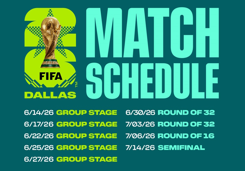 ഡാളസ്:ഡാളസ് AT&T സ്റ്റേഡിയം 2026 ലോകകപ്പ് ടൂർണമെൻ്റിൽ ഒമ്പത് മത്സരങ്ങൾക്ക് വേദിയാകും ഉച്ചയ്ക്ക് രണ്ട് മണിക്കായിരുന്നു ഫിഫയുടെ പ്രഖ്യാപനം. മുഴുവൻ ടൂർണമെൻ്റ് ഷെഡ്യൂളും ഞായറാഴ്ച സംപ്രേക്ഷണം ചെയ്തു.