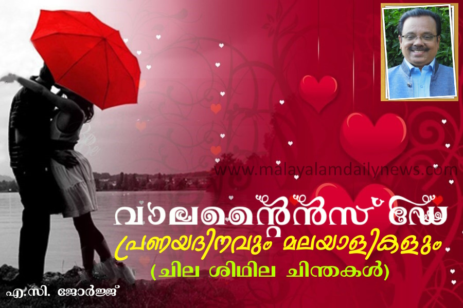 ഒരിക്കല്ക്കൂടി അഖിലലോക പ്രണയദിനം സമാഗതമായി. പലര്ക്കും പതിവുപോലെ പ്രണയദിനം ഒരു ഉത്സവമാണ്, ഒരു ആഘോഷമാണ്. പുതുപുത്തന് പ്രണയ ആയോധനമുറകളുമായി പ്രണയഗോദയിലെത്തുന്ന കാമുകി കാമുകന്മാര്ക്ക് ഈ പ്രണയദിനം ഒരാവേശമാണ്, ഒരു കരുത്താണ് നല്കുന്നത്. വിവാഹിതരായോ അവിവാഹിതരായോ കഴിയുന്ന കാമുകീ കാമുകന്മാര്ക്കും ഓര്ക്കാനും ഓമനിക്കാനും അയവിറക്കാനും ലഭ്യസ്വപ്നങ്ങളെയോ നഷ്ടസ്വപ്നങ്ങളെയോ താലോലിക്കാനുമുള്ള ഒരവസരമാണ് നല്കുന്നത്. മനുഷ്യനു മാത്രമല്ല അഖില പ്രപഞ്ച ജീവജാലങ്ങളിലും അന്തര്ലീനമായിരിക്കുന്ന ഒരു മഹാപ്രതിഭാസമാണ് പ്രണയിക്കാനും പ്രണയം ഏറ്റു വാങ്ങുവാനുമുള്ള ഒരു കഴിവ്. മാനവീക പ്രണയ മാനറിസത്തെ പ്രത്യേകമായി മലയാളികളുടെ പ്രണയദിന ചിന്തകളെ ആസ്പദമാക്കി ഒരല്പം നര്മ്മത്തില്ചാലിച്ച് കുറച്ച് ശിഥിലമായ പ്രണയവര്ണ്ണ നര്മ്മ മര്മ്മ ശകലങ്ങള് അവതരിപ്പിക്കുകയാണ് ഈ ലേഖനത്തിന്റെ ലക്ഷ്യം.