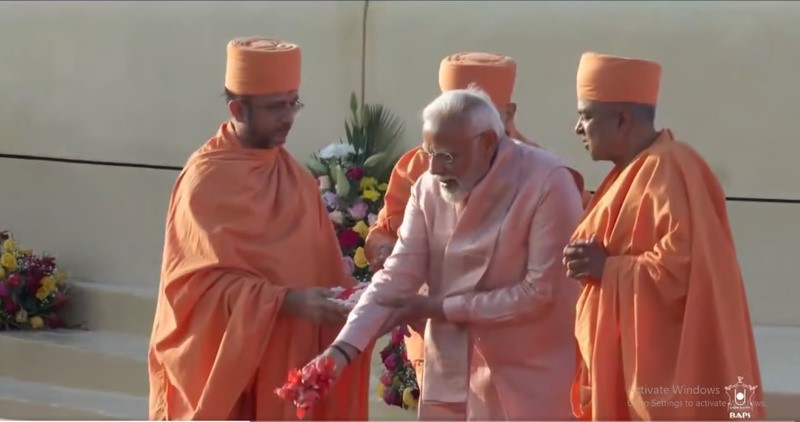 #WATCH | Prime Minister Narendra Modi offers prayers at the Bochasanwasi Akshar Purushottam Swaminarayan Sanstha (BAPS) Mandir, the first Hindu temple in Abu Dhabi. pic.twitter.com/6vi2CqTqK4
