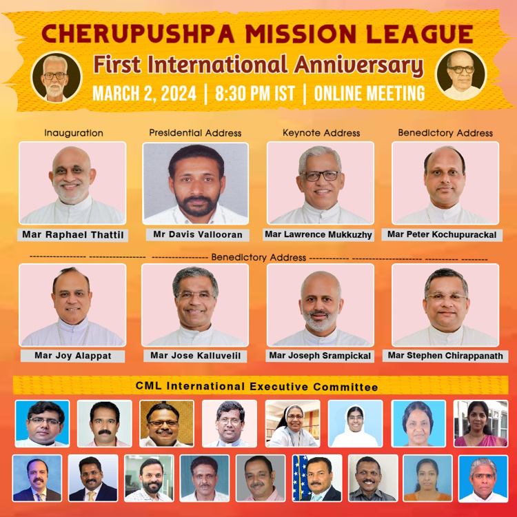 കാക്കനാട്: കേരളത്തിൽ തുടക്കം കുറിച്ച് ഇന്ന് വിവിധ രാജ്യങ്ങളിൽ സജീവമായി പ്രവർത്തിക്കുന്ന കത്തോലിക്കാ അല്തമായ സംഘടനയായ ചെറുപുഷ്പ (ലിറ്റൽ ഫ്ലവർ) മിഷൻ ലീഗി’ന്റെ അന്തർദേശീയ വാർഷിക സമ്മേളനം മാർച്ച് 2ന് ഓൺലൈനായി നടത്തപ്പെടും. സീറോ മലബാർ സഭാ തലവനും മിഷൻ ലീഗിന്റെ രക്ഷാധികാരിയുമായ ആർച്ച് ബിഷപ്പ് മാർ റാഫേൽ പരിപാടികൾ ഉദ്ഘാടനം ചെയ്യും.