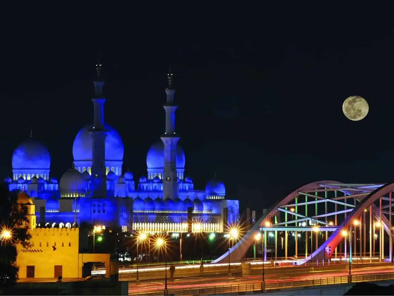 2007-ൽ ഉദ്ഘാടനം ചെയ്യപ്പെട്ട ഷെയ്ഖ് സായിദ് ഗ്രാൻഡ് മോസ്‌ക്, വിവിധ ഇസ്‌ലാമിക വാസ്തുവിദ്യാ സ്‌കൂളുകളെ സംയോജിപ്പിക്കുന്ന ലോകപ്രശസ്ത മസ്ജിദും വാസ്തുവിദ്യാ മാസ്റ്റർപീസുമാണ്.