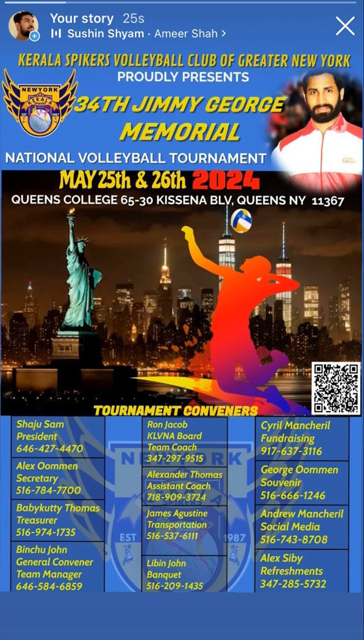 ന്യൂയോർക്ക്: 1970-1980 കാലഘട്ടത്തിൽ വോളിബോൾ ലോകത്തെ ഇതിഹാസമായിരുന്ന, അകാലത്തിൽ പൊലിഞ്ഞു പോയ ജിമ്മി ജോർജിൻറെ ഓർമ്മകൾ നിലനിർത്തികൊണ്ട് 33 വർഷങ്ങൾക്ക് മുമ്പ് അമേരിക്കയിൽ രൂപം കൊണ്ട “ജിമ്മി ജോർജ് മെമ്മോറിയൽ നാഷണൽ വോളി ബോൾ ടൂർണമെൻറ്” പതിന്നാല് വർഷങ്ങൾക്ക് ശേഷം ന്യൂയോർക്കിൻറെ മണ്ണിൽ എത്തിച്ചേർന്നതിന്റെ ആവേശത്തിലാണ് ലോംഗ് ഐലൻഡിലെ കേരളാ സ്പൈക്കേഴ്സ് വോളി ബോൾ ക്ലബ്ബ് അംഗങ്ങൾ. 34-ാമത് ജിമ്മി ജോർജ് മെമ്മോറിയൽ ടൂർണമെന്റിന് ആതിഥേയത്വം നൽകാൻ അവസരം ലഭിച്ച കേരളാ സ്പൈക്കേഴ്സ് വോളിബോൾ ക്ലബ്ബ് ഓഫ് ഗ്രെയ്റ്റർ ന്യൂയോർക്ക് ഭാരവാഹികളും കളിക്കാരും മെയ് 25, 26 (ശനി, ഞായർ) തീയതികളിൽ വോളി ബോൾ മാമാങ്കം സംഘടിപ്പിക്കുവാൻ തയ്യാറെടുത്തുകൊണ്ടിരിക്കുന്നു. മെമ്മോറിയൽ ഡേ ആഴ്ച കൂടിയായ മെയ് 25-നും 26-നും ഫ്ലഷിംഗിലുള്ള ക്വീൻസ് കോളേജ് ഇൻഡോർ സ്റ്റേഡിയത്തിൽ (Queens College, 65-30 Kissena Blvd, Flushing, NY) പ്രസ്തുത ടൂർണമെൻറ് വലിയ ആഘോഷമാക്കുവാനുള്ള ക്രമീകരണങ്ങളാണ് ചെയ്യുന്നത്.