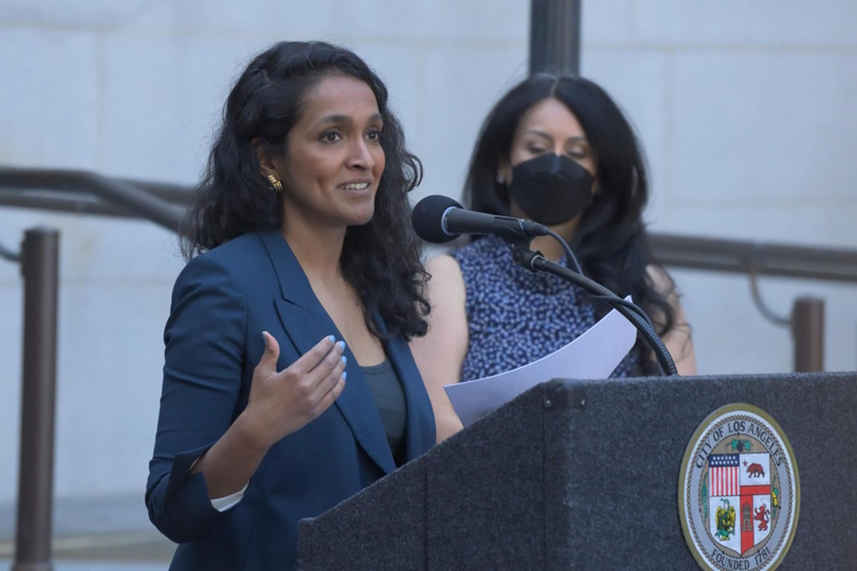 ലോസ് ഏഞ്ചൽസ്: ലോസ് ഏഞ്ചൽസ് സിറ്റി കൗൺസിലിലെ 4-ാം ഡിസ്ട്രിക്റ്റ് സീറ്റിലേക്കുള്ള നവംബറിലെ രണ്ടാംഘട്ട തിരഞ്ഞെടുപ്പിൽ നിലവിലുള്ള നിത്യ രാമൻ ചലഞ്ചർ ഏഥൻ വീവറിനെ നേരിടും.