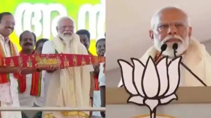എല്ഡിഎഫിനെയും യു ഡി എഫിനേയും കടന്നാക്രമിച്ച് കൊണ്ടായിരുന്നു മോദിയുടെ പ്രസംഗം. മാറി മാറി വരുന്ന ഇടത് വലത് മുന്നണി ഭരണസംവിധാനം തകര്ത്തെറിഞ്ഞാല് മാത്രമേ കേരളത്തിലെ ജനങ്ങള്ക്ക് ഗുണമുണ്ടാകൂ. ഇവിടെ ശത്രുക്കളായവര് ഡല്ഹിയില് പരസ്പരം ആലിംഗനം ചെയ്യുന്നുവെന്നും മോദി ചൂണ്ടിക്കാട്ടി. കാലഹരണപ്പെട്ട ആശയങ്ങളാണ് ഇരു മുന്നണികള്ക്കുമുള്ളത്. പുരോഗമന ചിന്താഗതിയുള്ള ജനത ഇടതുപക്ഷത്തെ ബംഗാളിൽ നിന്നും ത്രിപുരയിൽ നിന്നും പുറത്താക്കിയെന്നും തറപ്പിച്ചു പറഞ്ഞു. കേന്ദ്ര സർക്കാർ കേരളത്തിൻ്റെ വികസനത്തിന് ഊന്നൽ നൽകുമ്പോൾ ഭരണമുന്നണികൾ വോട്ട് ബാങ്ക് രാഷ്ട്രീയത്തിൽ ഏർപ്പെടുകയാണെന്ന് അദ്ദേഹം ആരോപിച്ചു.