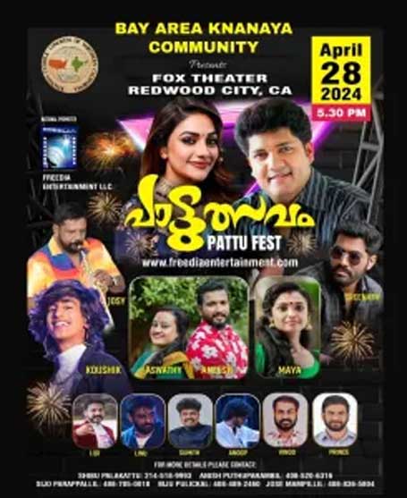 കാലിഫോര്ണിയയില് പ്രശസ്തമായ സിലിക്കണ് വാലിയില് ഉള്പ്പെടുന്ന ബേ ഏരിയയിലെ ക്നാനായ കമ്മ്യൂണിറ്റി ആണ് എല്ലാ മലയാളികള്ക്കും അയി ഈ ഷോ സംഘടിപ്പിക്കുന്നത്. കോവിഡ് എന്ന മഹാമാരിക്ക് ശേഷം ആദ്യം ആയിട്ടാണ് ബേ ഏരിയയില് ഇത്തരത്തില് ഒരു മലയാളീ ഷോ സംഘടിപ്പിക്കുന്നത്. ഇതിനായി മുന്പോട്ടു വന്ന ബേ ഏരിയയിലെ ക്നാനായ കമ്മ്യൂണിറ്റിക്കു ബേ ഏരിയയിലെ മറ്റു മലയാളീ അസ്സോസ്സിയേഷന്റെ ഭാരവാഹികള് നന്ദി രേഖപെടുത്തുന്നതിനോടൊപ്പം എല്ലാ വിധ ആശംസകളും അറിയിച്ചു.