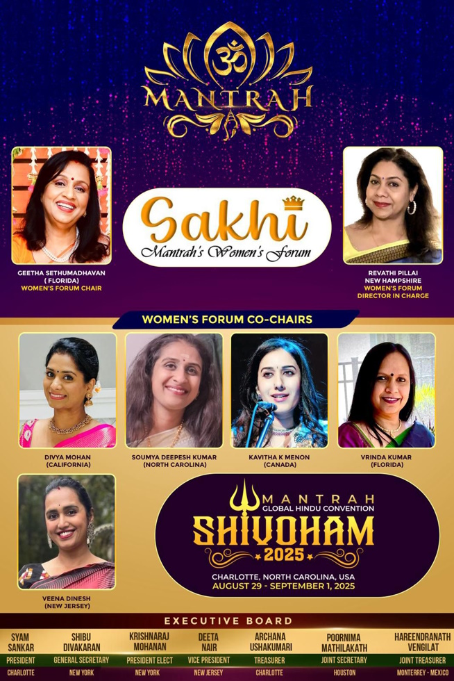 അമേരിക്കയിലെ മലയാളീ ഹിന്ദു ആദ്ധ്യാത്മിക സംഘടനയായ ‘മന്ത്ര’ (മലയാളി അസോസിയേഷൻ ഓഫ് നോർത്ത് അമേരിക്കൻ ഹിന്ദുസ്) യുടെ വിമൻസ് ഫോറത്തിന്റെ ഉത്ഘാടനം കോഅലിഷൻ ഓഫ് ഹിന്ദൂസ് ഓഫ് നോർത്ത് അമേരിക്ക ( CoHNA) യുടെ ഡയറക്ടർ ശ്രീമതി സുധ ജഗന്നാഥൻ മാർച്ച് 30, ശനിയാഴ്ച ഉച്ചക്ക് ഒരുമണിക്ക് (ന്യൂയോർക്ക് സമയം) നിർവഹിച്ചു. ആമുഖ പ്രസംഗത്തിൽ മന്ത്ര യുടെ പ്രസിഡൻറ് ശ്രീ ശ്യാം ശങ്കർ സംഘടന യുടെ വിവിധ പരിപാടികളെ കുറിച്ച് വിശദീകരിക്കുകയും വിമൻസ് ഫോറം ‘സഖി’ യുടെ ചെയർ പേഴ്സൺ ശ്രീമതി ഗീത സേതുമാധവൻ (ഫ്ലോറിഡ), കോ-ചെയർസ് ആയ സൗമ്യ ദീപേഷ് കുമാർ (നോർത്ത് കരോലിന ), ദിവ്യ മോഹൻ (കാലിഫോർണിയ ), കവിത മേനോൻ (കാനഡ), വൃന്ദ കുമാർ (ഫ്ലോറിഡ), വീണ ദിനേശ് (ന്യൂ ജേഴ്സി), ഡയറക്ടർ ഇൻ ചാർജ് രേവതി പിള്ള (ന്യൂ ഹാംഷെയർ) എന്നിവർ ചാർജ് എടുത്തതായും, അടുത്ത മാസത്തോടെ ഹ്യൂസ്റ്റൺ, ടെക്സാസ് ഇൽ നിന്നും ന്യൂ യോർക്ക് ഇൽ നിന്നുമുള്ള പ്രതിനിധികൾ ചാർജ് എടുക്കുമെന്നും അറിയിച്ചു.