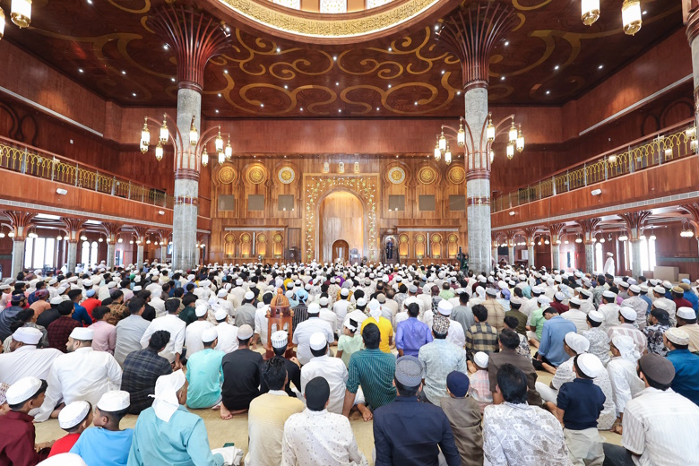 നോളജ് സിറ്റി: ഗ്രാന്ഡായി ഇന്ത്യന് ഗ്രാന്ഡ് മസ്ജിദ് ജാമിഉല് ഫുതൂഹിലെ ഈദുല് ഫിത്വ്ര് ആഘോഷം. രാവിലെ എട്ടിന് നടന്ന പെരുന്നാള് നിസ്കാരത്തിന് ഇന്ത്യന് ഗ്രാന്ഡ് മുഫ്തി കാന്തപുരം എ പി അബൂബക്കര് മുസ്ലിയാര് നേതൃത്വം നല്കി. പെരുന്നാള് നന്മകള് പരസ്പരം പകരാനുള്ള ദിനമാണെന്നും മദ്യപാനം പോലുള്ള സാമൂഹിക തിന്മകള്ക്ക് ആഘോഷം വഴിമാറരുതെന്നും എന്നും അദ്ദേഹം പെരുന്നാള് ദിന സന്ദേശ പ്രഭാഷണത്തില് പറഞ്ഞു.