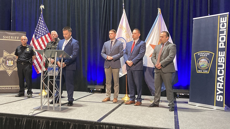 സിറാക്കൂസ് പോലീസ് ഓഫീസർ മൈക്കൽ ഇ ജെൻസണും ഷെരീഫിൻ്റെ ലെഫ്റ്റനൻ്റ് മൈക്കൽ ഹൂസോക്കും സബർബൻ പരിസരത്ത് വെടിവെപ്പിൽ കൊല്ലപ്പെട്ടതായി തിങ്കളാഴ്ച ഉച്ചയ്ക്ക് ഒരു വാർത്താ സമ്മേളനത്തിൽ സിറാക്കൂസ് പോലീസ് മേധാവി ജോ സിസിലി പറഞ്ഞു..രാത്രി 8.51 ഓടെയാണ് രണ്ട് ഉദ്യോഗസ്ഥർക്കും സംശയിക്കുന്നയാൾക്കും വെടിയേറ്റത്..പ്രതിഎന്ന് സംശയിക്കുന്ന സലീനയിലെ ക്രിസ്റ്റഫർ ആർ. മർഫി (33) എന്നയാളാണ് വെടിവെപ്പിൽ കൊല്ലപ്പെട്ടതെന്ന് അധികൃതർ അറിയിച്ചു.2014-ൽ മദ്യപിച്ച് വാഹനമോടിച്ചതിന് വെടിവെച്ചയാളുടെപേരിൽ അറസ്റ്റിനെ ചെറുത്തതിനെതിരെ കേസടുത്തിരുന്നു
