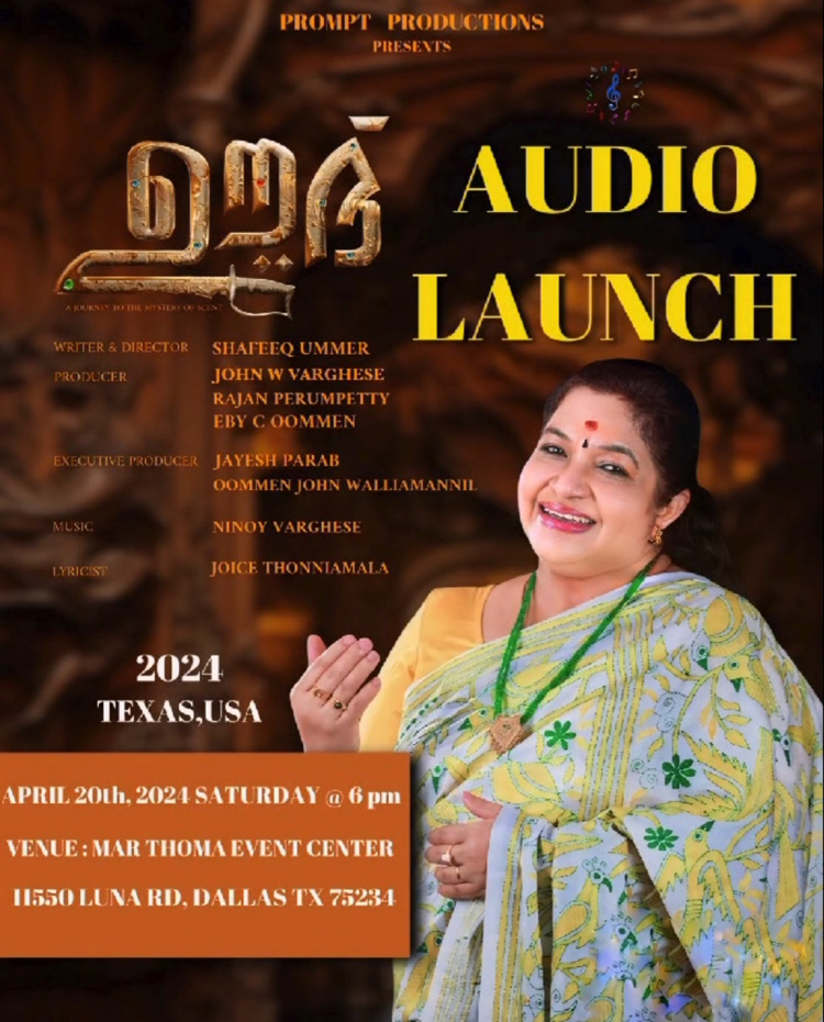 ഡാളസ് :”ഊദ്”എന്ന് നാമകരണം ചെയ്തിരിക്കുന്ന ചിത്രത്തിലെ മനോഹരമായ ഗാനം കെ എസ് ചിത്ര, ആലപിച്ചു ഓഡിയോ ലോഞ്ചിങ് നടത്തും.
