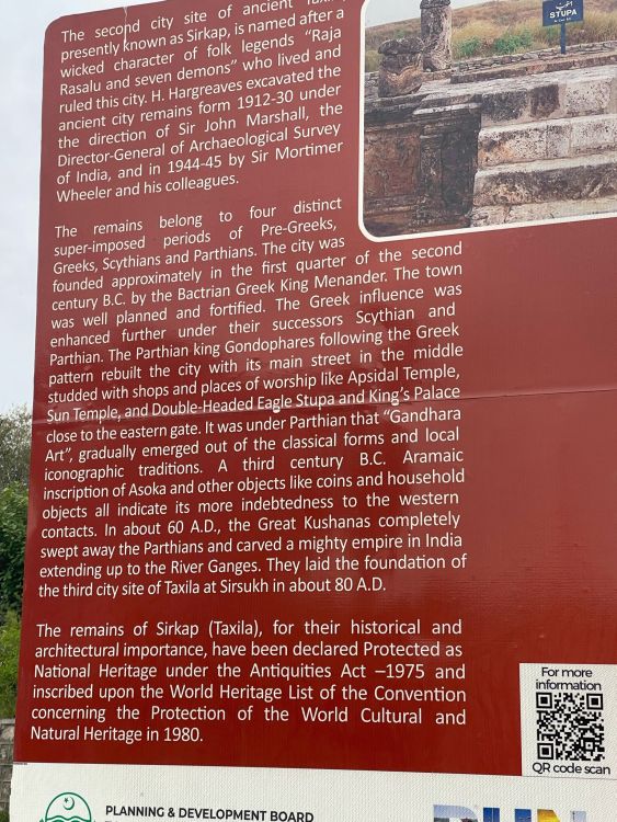പാർത്ഥിയൻ രാജാവായ ഗൊണ്ടോഫറസിൻ്റെ രാജ്യ (ബിസി 30 മുതൽ സിഇ 80 വരെ) മായിരുന്നു “ഇന്തോ-പാർത്തിയൻ” എന്നും വിളിക്കപ്പെടുന്ന സിർകാപ്. ഖനനം ചെയ്ത് കണ്ടെടുത്ത സിർകാപ്പ് പട്ടണത്തിന് ഏകദേശം 1200 മീറ്റർ നീളവും 400 വീതിയുമുണ്ട്. നഗരത്തെ ചുറ്റുന്ന മതിലിന് 6-10 മീറ്റർ ഉയരവും 5-7 മീറ്റർ വീതിയും ഏകദേശം 4,800 മീറ്റർ നീളവുമുള്ളതായി കണക്കാക്കപ്പെടുന്നു.