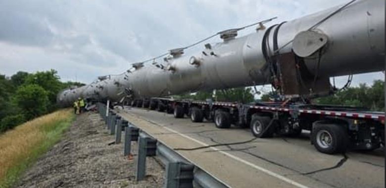 350,000 പൗണ്ട് ഭാരം ട്രാൻസ്പോർട്ട് ട്രെയിലറിൽ നിന്ന് തെന്നി മാറുകയും മറ്റൊരു വാഹനം അതിനടിയിൽ കുടുങ്ങുകയും ചെയ്തതായി ടെമ്പിൾ ഫയർ ആൻഡ് റെസ്ക്യൂ ജീവനക്കാർ അറിയിച്ചു.ഈ സമയം മൂന്ന് പേരാണ് വാഹനത്തിനുള്ളിൽ ഉണ്ടായിരുന്നത്.