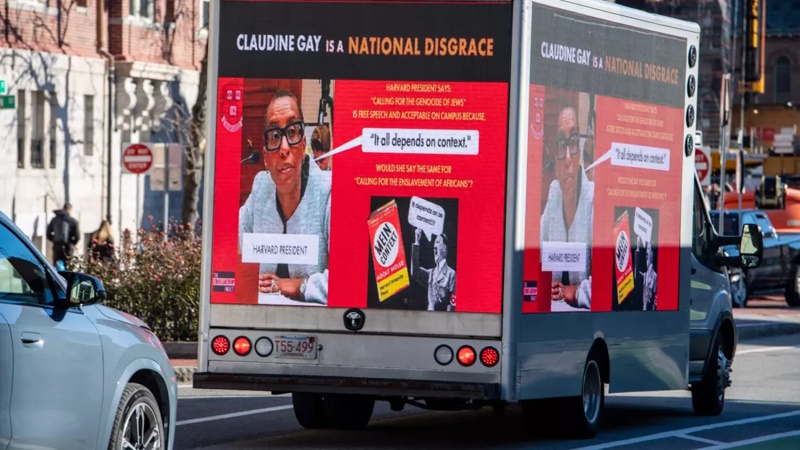 ഗാസയ്ക്കെതിരായ ഇസ്രായേലിൻ്റെ യുദ്ധം ആരംഭിച്ച് ദിവസങ്ങൾക്ക് ശേഷം – ഒക്ടോബർ 7 ന് ഹമാസിൻ്റെ നേതൃത്വത്തിലുള്ള ഫലസ്തീനിയൻ സായുധ ഗ്രൂപ്പുകൾ തെക്കൻ ഇസ്രായേലിൽ ആക്രമണം നടത്തിയപ്പോൾ – ഹാർവാർഡ് യൂണിവേഴ്സിറ്റി കാമ്പസിന് ചുറ്റും “ആൻ്റിസെമിറ്റുകൾ” എന്ന വാക്കിനൊപ്പം വിദ്യാർത്ഥികളുടെ പേരും ഫോട്ടോകളും പ്രദർശിപ്പിക്കുന്ന ഒരു മൊബൈൽ ബിൽബോർഡ് സംഘം പ്രദര്ശിപ്പിച്ചിരുന്നു.
