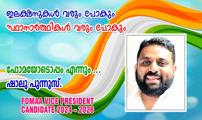 ഫോമാ വൈസ് പ്രസിഡന്റ് സ്ഥാനത്തേക്ക് മത്സരിക്കുന്ന വിവരം അറിയിച്ചുകൊണ്ടുള്ള ആദ്യ പോസ്റ്ററിലെ വാക്കുകളിൽക്കൂടി ഷാലു തന്റെ നയം വ്യക്തമാക്കുന്നു .. ” ഇലക്ഷനുകൾ വരും പോകും.. സ്ഥാനാർത്ഥികൾ വരും പോകും.. ഫോമയോടൊപ്പം എന്നും … ഷാലു പുന്നൂസ് ” – ഈ പോസ്റ്റർ ഇതിനോടകം ഏവരുടെയും ശ്രദ്ധ പിടിച്ചുപറ്റിക്കഴിഞ്ഞു. ഇത് ഷാലുവിനെ സംബന്ധിച്ചിടത്തോളം വെറുമൊരു ഭംഗിവാക്കല്ല .. ആത്മാർത്ഥതയിൽ പൊതിഞ്ഞ യാഥാർഥ്യമാണ് എന്ന് ഷാലുവിനെ അടുത്തറിയാവുന്ന ഏവർക്കും ഉറപ്പുള്ള വസ്തുതയാണ്.
