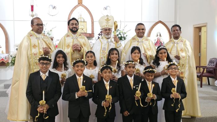 ഷിക്കാഗോ: ബെന്സന്വില് തിരുഹൃദയ ക്നാനായ കത്തോലിക്കാ ഫൊറോനാ പള്ളിയില്, ആഘോഷമായ പ്രഥമദിവ്യകാരുണ്യ സ്വീകരണം നടത്തപ്പെട്ടു.. മൂന്നാം ക്ലാസ്സിലെ മതബോധന വിദ്യാര്ത്ഥികളുടെ ആഘോഷമായ ദിവ്യകാരുണ്യ സ്വീകരണം ശനിയാഴ്ച വൈകുന്നേരം 4 മണിക്ക് നടന്നു.