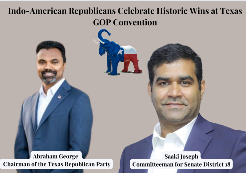 സാൻ അൻ്റൊണിയോ: ഇൻഡോ അമേരിക്കൻ സമൂഹത്തിനും ടെക്സാസ് റിപ്പബ്ലിക്കൻ പാർട്ടിക്കും അഭിമാനിക്കുവാൻ വക നൽക്കിയ ഒന്നായിരുന്നു കഴിഞ്ഞദിവസം സാൻ അന്റോണിയോ കൺവെൻഷൻ സെൻററിൽ നടന്ന റിപ്പബ്ലിക്കേഷൻ പാർട്ടി സമ്മേളനം. ടെക്സാസ് ജി ഓ പി സമ്മേളനത്തിനിടയിൽ നടന്ന ചരിത്രപരമായ തെരഞ്ഞെടുപ്പിൽ മലയാളികളായ കോളിംഗ് കൗണ്ടിലെ എബ്രഹാം ജോർജ് ടെക്സാസ് റിപ്പബ്ലിക് പാർട്ടിയുടെ ചെയർമാനായി തെരഞ്ഞെടുക്കപ്പെട്ടു. ഫോർട്ട് ബെൻഡ് കൗണ്ടി കൂടി ഉൾപ്പെടുന്ന മറ്റ് 17 കൗണ്ടികളെ പ്രതിനിധീകരിച്ചുകൊണ്ട് സാക്കി ജോസഫ് സെനറ്റ് ഡിസ്ട്രിക്ട് 18 ൽ നിന്ന് സ്റ്റേറ്റ് റിപ്പബ്ലിക്കൻ എക്സിക്യൂട്ടീവ് കമ്മിറ്റിയിൽ കമ്മിറ്റിമാനായി തെരഞ്ഞെടുക്കപ്പെട്ടു. ഏഷ്യൻ വംശജരിൽ നിന്ന് ടെക്സാസിൻ്റെ രാഷ്ട്രീയ ചരിത്രത്തിൽ ഈ സ്ഥാനങ്ങളിലേക്ക് തെരഞ്ഞെടുക്കപ്പെടുന്ന ആദ്യ വ്യക്തികളാണ് ഇരുവരും.