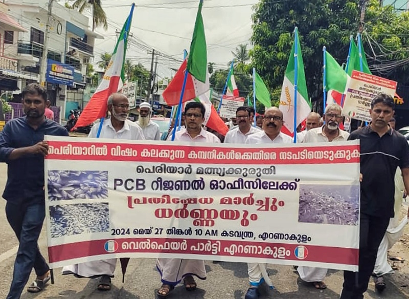 പെരിയാറിലെ മത്സ്യക്കുരുതിയും നിറം മാറിയൊഴുകലും തുടർക്കഥയാകുമ്പോഴും യഥാർത്ഥ കാരണങ്ങൾ മൂടിവച്ച് കമ്പനികളെ സംരക്ഷിക്കുകയാണ് സർക്കാർ ചെയ്യുന്നത്. മലിനീകരണത്തിനെതിരെ നടപടിയെടുക്കേണ്ട ബോർഡ് അതിനെതിരെ പ്രതിഷേധിക്കുന്ന ജനങ്ങളുടെ വായ മൂടിക്കെട്ടി നിയന്ത്രിക്കാനാണ് നോക്കുന്നത്. ബോർഡിന്റേതല്ലാത്ത റിപ്പോർട്ടുകളെല്ലാം രാസമാലിന്യം പെരിയാറിൽ കലർന്നതായി പറയുമ്പോഴും ബോർഡ് മാത്രം കണ്ണിൽ പൊടിയിടുന്ന തരത്തിലുള്ള റിപ്പോർട്ടുകൾ സമർപ്പിക്കുകയാണ് ചെയ്യുന്നത്. ജനങ്ങളുടെ ആരോഗ്യത്തിന് ഒട്ടും വില കൽപ്പിക്കാത്ത പിസിബിയും സർക്കാരും തലമുറകളോട് ചെയ്യുന്ന ഏറ്റവും വലിയ ക്രൂരതയാണ് ഇതൊന്നും അദ്ദേഹം കൂട്ടിച്ചേർത്തു. ജില്ലാ പ്രസിഡണ്ട് കെഎച്ച് സദക്കത്ത് അധ്യക്ഷത വഹിച്ചു. ജനറൽ സെക്രട്ടറി ഷംസുദ്ദീൻ എടയാർ, ട്രഷറർ കെ. എ. സദീഖ് തുടങ്ങിയവർ സംസാരിച്ചു. ജില്ല വൈസ് പ്രസിഡണ്ട് നസീർ അലിയാർ കൊച്ചി, ജില്ലാ സെക്രട്ടറിമാരായ ഇല്യാസ് ടി എം., നാദിർ ഷാ, ജമാലുദ്ദീൻ എം. കെ. തുടങ്ങിയവർ മാർച്ചിന് നേതൃത്വം നൽകി.