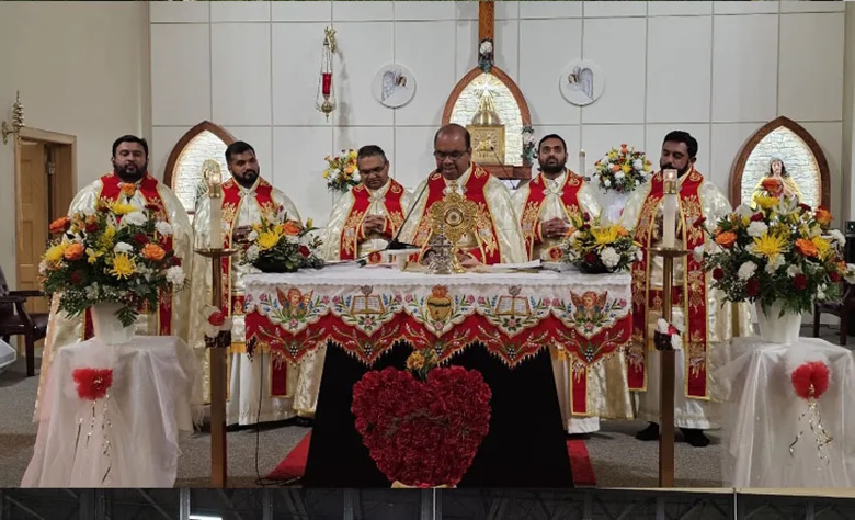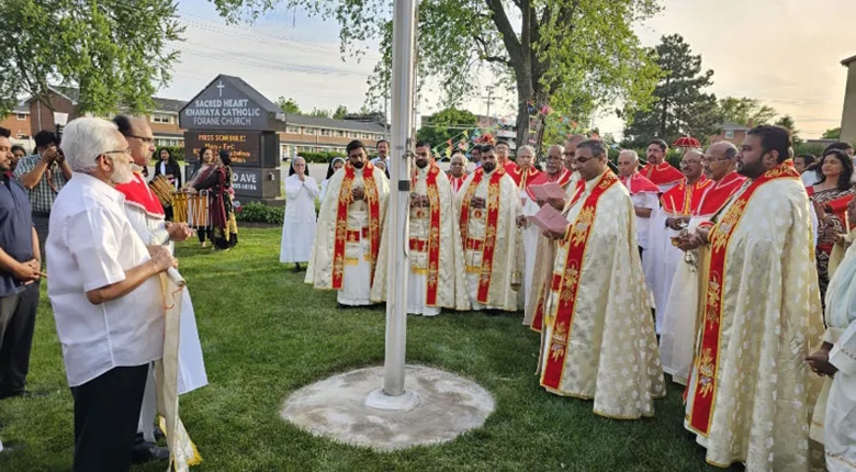 ഷിക്കാഗോ: ബെന്സന്വില് തിരുഹൃദയ ക്നാനായ കത്തോലിക്കാ ഫൊറോന ദൈവാലയത്തിലെ പ്രധാന തിരുനാളിന് കൊടിയേറി. കഴിഞ്ഞ നാല് ദിവസമായി നടന്ന കൂടാരയോഗതല ഒരുക്കത്തിന് ശേഷം വികാരി ഫാ.തോമസ് മുളവനാല് തിരുന്നാളിന് തുടക്കം കുറിച്ച് കൊടിയേറ്റി. അസി. വികാരി ഫാ. ബിന്സ് ചേത്തലില്, ഫാ. മെല്വിന്, ഫാ. കെവിന് , ഫാ. ജോയല്പയസ് , ഫാ. റ്റോം. കണ്ണന്താനം എന്നിവരും തിരുക്കര്മങ്ങളില് കാര്മികരായി.