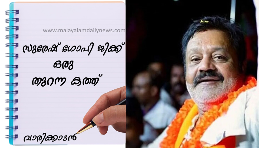 കേന്ദ്ര സഹമന്ത്രിയായി സത്യപ്രതിജ്ഞ ചെയ്ത് അധികാരം ഏറ്റെടുത്ത ഞങ്ങളുടെ പ്രിയപ്പെട്ട സുരേഷ് ഗോപി ജിക്ക് അഭിനന്ദനങ്ങൾ അറിയിക്കുന്നു. താങ്കളിൽ നിക്ഷിപ്തമായ വകുപ്പ് എന്തുതന്നെയായാലും കേരളത്തിൻറെ മാലിന്യ വിഷയത്തിൽ താങ്കൾ ശ്രദ്ധ ചെലുത്തും എന്ന് പ്രതീക്ഷയിൽ ആണ് ഞാൻ ഈ കത്ത് എഴുതുന്നത്. തൃിശ്ശൂർ ലോക്സഭാ മണ്ഡലത്തിൽ മാത്രമല്ല കേരളത്തിൻറെ ആകമാനമായുള്ള പുരോഗമനത്തിലും ദുരിതമനുഭവിക്കുന്നവരുടെ കണ്ണീരൊപ്പുന്നതിലും താങ്കൾ ഈ കാലമത്രയും ചെയ്ത പ്രവർത്തികൾ വിലമതിക്കാവുന്നതിലും അപ്പുറമാണ്. ഭരത്ചന്ദ്രൻ ഐപിഎസ് ആയും ആനക്കാട്ടിൽ ചാക്കോച്ചിയായും മാളിയേക്കൽ തൊമ്മിയായും അഭ്രപാളികളിൽ അത്ഭുതം തീർത്ത താങ്കൾ കേന്ദ്ര സഹമന്ത്രിയായി വരുമ്പോൾ മാറ്റത്തിന്റെ വലിയ അത്ഭുതമാണ് ഞങ്ങൾ പ്രതീക്ഷിക്കുന്നത്. നമ്മുടെ പ്രിയപ്പെട്ട കേരളത്തിൻ്റെ ക്ഷേമത്തിലും വികസനത്തിലും അതീവ ഉത്കണ്ഠയുള്ള ഒരു വ്യക്തി എന്ന നിലയിൽ, അടിയന്തിരവും സുസ്ഥിരവുമായ ശ്രദ്ധ ആവശ്യമുള്ള, വൃത്തിയുടെയും ശുചിത്വത്തിൻ്റെയും പ്രശ്നം, താങ്കളുടെ ശ്രദ്ധയിൽപ്പെടുത്തുന്നതിനാണ് ഞാൻ ഇത് എഴുതുന്നത്.