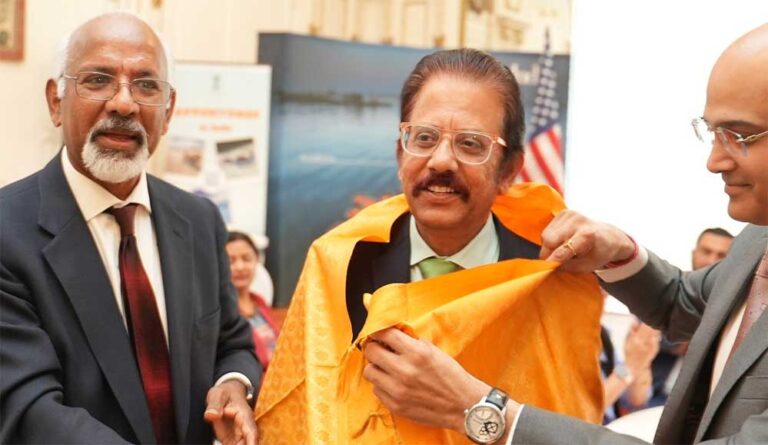 തുടർന്ന് തോമസ് റ്റി ഉമ്മനും ഡപ്യൂട്ടി കോൺസൽ ജനറൽ ഡോ വരുൺ ജെഫും ചേർന്ന് വിജയകൃഷ്ണനെ പൊന്നാട അണിയിച്ചു.