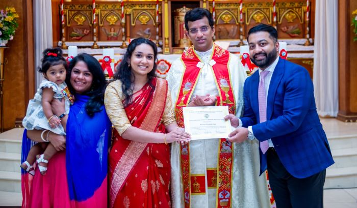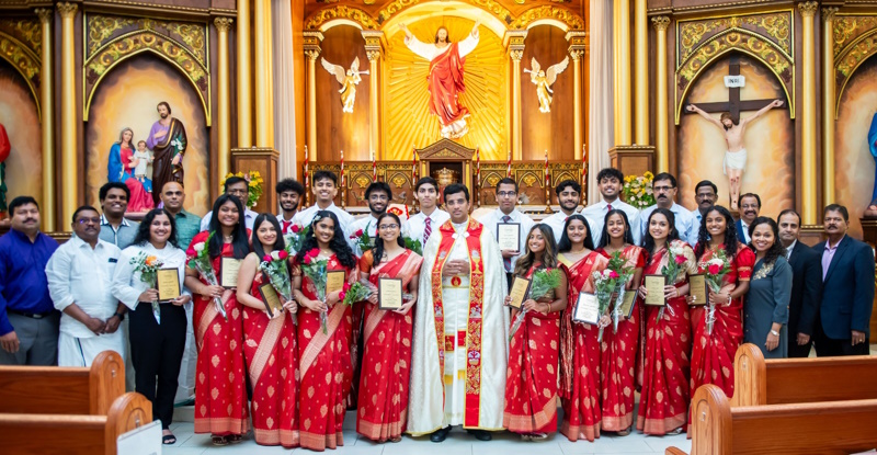 സെന്റ് തോമസ് സീറോ മലബാര് കത്തോലിക്കാ ഫൊറോനാ ദേവാലയത്തില് നടന്ന ലളിതമായ ചടങ്ങില് ഈ വര്ഷം സണ്ഡേ പന്ത്രണ്ടാം ക്ലാസില് നിന്നും ഗ്രാജ്വേറ്റ് ചെയ്ത് ഡിപ്ലോമ നേടിയ 17 യുവതീയുവാക്കളാണ് ആദരവിന് അര്ഹരായത്. ഇടവക വികാരി റവ. ഡോ. ജോര്ജ് ദാനവേലിന്റെ മുഖ്യ കാര്മ്മികത്വത്തില് അര്പ്പിക്കപ്പെട്ട ദിവ്യബലിയെ തുടര്ന്നാണ് സി.സി.ഡി. ക്ലാസ് ഓഫ് 2024 ഗ്രാജ്വേറ്റുകളെ അനുമോദിച്ചു പ്രത്യേക പ്രാര്ത്ഥനകളും അനുഗ്രഹ പ്രഭാഷണവും നടത്തിയത്. മതബോധന സ്കൂള് പ്രിന്സിപ്പാള് ജേക്കബ് ചാക്കോ, പന്ത്രണ്ടാം ക്ലാസ് അദ്ധ്യാപിക ഡോ. ബിന്ദു മെതിക്കളം ക്ലാസ് ഓഫ് 2024 നു ആശംസകളര്പ്പിച്ചു.