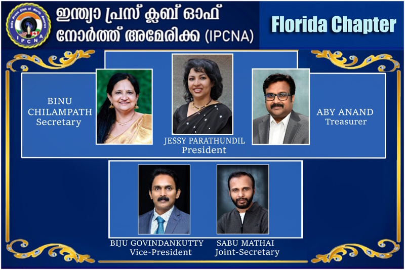 ഫ്ലോറിഡ: വടക്കെ അമേരിക്കയിലെ മലയാളി മാധ്യമ പ്രവർത്തകരുടെ കൂട്ടായ്മയായ ഇന്ത്യ പ്രസ് ക്ലബ്ബ് ഓഫ് നോർത്ത് അമേരിക്കയുടെ ഫ്ലോറിഡ ചാപ്റ്ററിന്റെ 2024-2025 വർഷത്തേക്കുള്ള ഭാരവാഹികളെ തെരെഞ്ഞെടുത്തു.