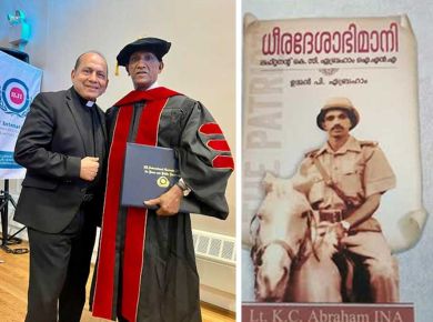 പിതാവ് ധീരദേശാഭിമാനി ലെഫ്റ്റനന്റ് കെ.സി.ഏബ്രഹാമിനെപ്പറ്റി ഒരു ലഘുവിവരണം തരാമോ?