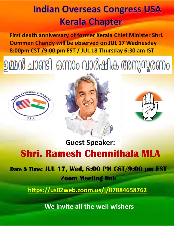 ഐഒസി ഷിക്കാഗോ ചാപ്റ്ററിന്റെ സ്ഥാപക ജനറല് സെക്രട്ടറിയും പ്രസിഡന്റുമായി പ്രവര്ത്തിച്ചിട്ടുണ്ട്. ഐഒസിയുടെ പ്രവര്ത്തനങ്ങള് അമേരിക്കയില് ഏകോപിപ്പിക്കുന്നതിനായി കഴിഞ്ഞ രണ്ടര പതിറ്റാണ്ടായി അദ്ദേഹം പ്രവര്ത്തിക്കുന്നു. സ്കൂള്, കോളജ് കാലഘട്ടങ്ങളില് കെഎസ് യുവിലും യൂത്ത് കോണ്ഗ്രസിലും സജീവ സാനിധ്യമായിരുന്നു.