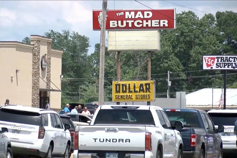 ലിറ്റിൽ റോക്കിന് തെക്ക് 70 മൈൽ അകലെയുള്ള ഫോർഡിസിലെ മാഡ് ബുച്ചർ പലചരക്ക് കടയ്ക്കുള്ളിലും പുറത്തും