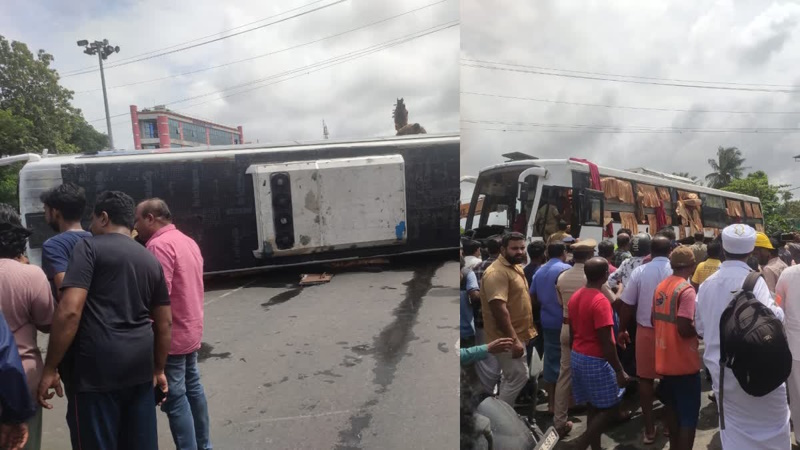 ഈ ഭാഗത്ത് സ്ഥിരമായി അപകടങ്ങൾ ഉണ്ടാകുന്നതായി നാട്ടുകാർ പറയുന്നു. അപകടത്തെ തുടർന്ന് ദേശീയ പാതയിൽ ഗതാഗതക്കുരുക്ക് തുടരുകയാണ്. ക്രെയിൻ ഉപയോഗിച്ച് ബസ് റോഡിൽ നിന്ന് മാറ്റി ഗതാഗതം പുനഃസ്ഥാപിക്കാനുള്ള ശ്രമത്തിലാണ്.