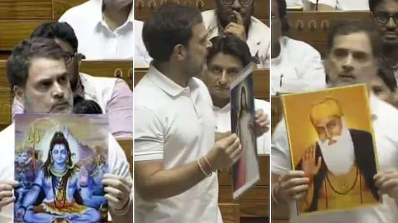 കോൺഗ്രസ് നേതാവും ലോക്സഭയിലെ പ്രതിപക്ഷ നേതാവുമായി തിരഞ്ഞെടുക്കപ്പെട്ടതിനു പിന്നാലെ ശക്തമായ പ്രസംഗമാണ് രാഹുൽ ഗാന്ധി നടത്തിയത് എന്നത് ശ്രദ്ധേയമാണ്. ഭരണഘടനയുടെ പകർപ്പ് ഉയര്ത്തിക്കാണിച്ചാണ് രാഹുല് ആദ്യം പ്രസംഗം തുടങ്ങിയത്. എന്നാൽ, രാഹുൽ ഗാന്ധി ശിവൻ്റെ ചിത്രം സഭയിൽ കാണിച്ചതോടെ സഭാനടപടികൾ കൂടുതൽ അക്രമാസക്തമായി. അതിന് ശേഷം വിവിധ മതനേതാക്കളുടെ ഫോട്ടോകളും അദ്ദേഹം കാണിച്ചു. സിഖ്, ക്രിസ്ത്യൻ, ഇസ്ലാം, ബുദ്ധൻ തുടങ്ങിയ വിവിധ മതങ്ങളുടെ വിശ്വാസവും ആചാരവും അദ്ദേഹം വിശദീകരിച്ചു.