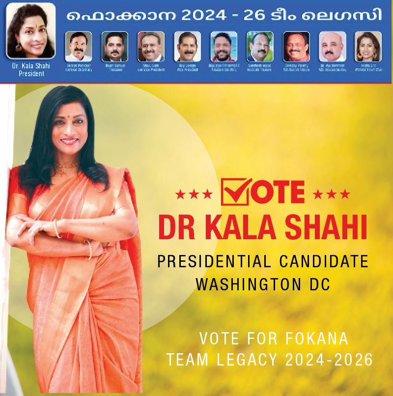 കഴിഞ്ഞ രണ്ടു ടേമുകളിലായി ഫൊക്കാനയുടെ ഏറ്റവും പ്രധാനമായ പദവികളിൽ അവരുടെ പ്രവർത്തനങ്ങൾ, ഫൊക്കാന വിമൻസ് ഫോറം ചെയർപേഴ്സണായും ഇപ്പോൾ ജനറൽ സെക്രട്ടറിയായും സേവനമനുഷ്ഠിക്കുമ്പോൾ ഫൊക്കാന എന്ന സംഘടനയുടെ ചരിത്രത്തിലെത്തന്നെ ഏറ്റവും മികച്ച മുഹൂർത്തമെന്നതിൽ സംശയമില്ല .അത് നിഷേധിക്കുവാൻ അമേരിക്കൻ മലയാളികൾക്കും സാധിക്കുകയില്ല. ഫൊക്കാന ജനറൽ സെക്രട്ടറിയും 2024 – 2026 കാലയളവിൽ ഫൊക്കാന പ്രസിഡൻ്റ് സ്ഥാനാർത്ഥിയുമായ ഡോ. കലാ ഷഹി ഫൊക്കാനയുടെ ജനപ്രിയ സെക്രട്ടറിയായി മാറിക്കഴിഞ്ഞിരിക്കുന്നു. ഏവർക്കും മാതൃകയായ സാമൂഹ്യ പ്രവർത്തക. ഫൊക്കാനയുടെ തുടക്കം മുതൽ ഫൊക്കാനയ്ക്കൊപ്പം നിലകൊണ്ട വനിതാ നേതാവ്. മറിയാമ്മ പിള്ളയ്ക്ക് ശേഷം ഫൊക്കാനയ്ക്ക് ഒരു വനിതാ പ്രസിഡന്റ് ഉണ്ടാകേണ്ടതിന്റെ ആവശ്യകതയും ഇപ്പോൾ പ്രസക്തം.
