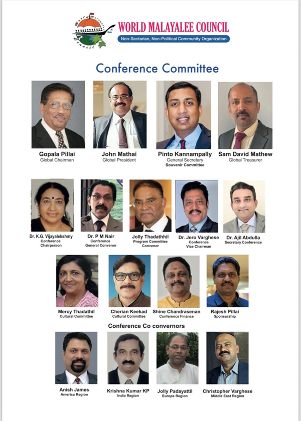 പരിപാടിയിൽ പങ്കെടുക്കാനുള്ള വിവരങ്ങൾക്ക് ബന്ധപെടുക: ഗ്ലോബൽ ചെയർമാൻ ഗോപാല പിള്ള(USA), ഗ്ലോബൽ പ്രസിഡന്റ് ജോൺ മത്തായി(Sharjah), ഗ്ലോബൽ ജനറൽ സെക്രട്ടറി പിന്റൊ കണ്ണംപള്ളി(USA), ഗ്ലോബൽ ട്രെഷറർ സാം ഡേവിഡ് മാത്യു(UK), കോൺഫറൻസ് കമ്മിറ്റി ചെയർപേഴ്സൺ Dr K G വിജയലക്ഷ്മി(India), ജനറൽ കൺവീനർ Dr P M നായർ IPS (retd), സെക്രട്ടറി Dr അജിൽ അബ്ദുള്ള(India), കോ കൺവീനേഴ്സ് കെ കൃഷ്ണകുമാർ(India), അനീഷ് ജെയിംസ് (USA), ക്രിസ്റ്റഫർ വര്ഗീസ്(Dubai), ജോളി പടയാറ്റിൽ(Germany), വൈസ് ചെയർപേഴ്സൺ ജെറോ വര്ഗീസ് (UAE), കൾച്ചറൽ കമ്മിറ്റി ചെറിയാൻ ടി കീക്കാട്(UAE), മേഴ്സി തടത്തിൽ(Germany), പ്രോഗ്രാം കമ്മിറ്റി ജോളി തടത്തിൽ(Germany), ഫിനാൻസ് കമ്മിറ്റി ഷൈൻ ചന്ദ്രസേനൻ(UAE), സ്പോൺസർഷിപ് കമ്മിറ്റി രാജേഷ് പിള്ള(UAE).