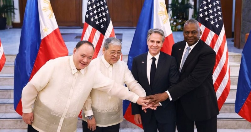 തങ്ങളുടെ സന്ദർശന വേളയിൽ, ദക്ഷിണ ചൈനാ കടലിലെ ചൈനയുടെ നടപടികൾക്കെതിരെ ഉറച്ച നിലപാട് സ്വീകരിച്ച ഫിലിപ്പീൻസ് പ്രസിഡൻ്റ് ഫെർഡിനാൻഡ് മാർക്കോസുമായി ബ്ലിങ്കനും ഓസ്റ്റിനും കൂടിക്കാഴ്ച നടത്തി. ഫിലിപ്പീൻസ് ഉദ്യോഗസ്ഥരായ എൻറിക് മനലോ, ഗിൽബെർട്ടോ തിയോഡോറോ എന്നിവരുമായും അവർ “2+2” ചർച്ചകൾ നടത്തി.