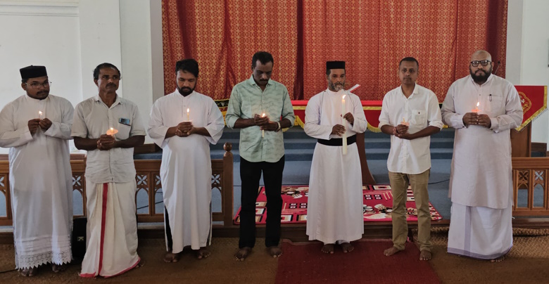 വിശ്വാസികൾ ചേർന്ന് മെഴുകുതിരി തെളിയിച്ചു സമൂഹ പ്രാർത്ഥനയിൽ സംബന്ധിപ്പിച്ചു. ഇടവക വികാരി ഫാ. മർക്കോസ് പള്ളിക്കുന്നേൽ ആദ്യ ദീപം തെളിയിച്ചു സെൽവരാജ് വിൻസന് കൈമാറി.ദുരിത ബാധിതരെ സഹായിക്കുന്നതിന് ലക്ഷ്യമിട്ട് ആരാധന മദ്ധ്യേ സമർപിച്ച സ്തോത്രകാഴ്ച ഇടവക ട്രസ്റ്റി റെന്നി തോമസ് തേവേരിൽ ഇടവക വികാരിക്ക് കൈമാറി.ഷാൽബിൻ മർക്കോസ്,ഡാനി വാലയിൽ, ഏബൽ റെന്നി എന്നിവർ നേതൃത്വം നല്കി.