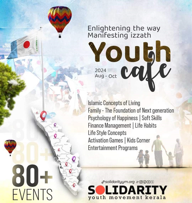 മക്കരപ്പറമ്പ : സോളിഡാരിറ്റി യൂത്ത് മൂവ്മെന്റ് മക്കരപ്പറമ്പ ഏരിയ സംഘടിപ്പിക്കുന്ന ‘യൂത്ത് കഫെ’ ആഗസ്റ്റ് 25 ന് ഞായറാഴ്ച വടക്കാങ്ങര ടാലന്റ് പബ്ലിക് സ്കൂളിൽ നടക്കും. പരിപാടിയുടെ വിജയത്തിനായി സ്വാഗതസംഘം രൂപീകരിച്ചു.