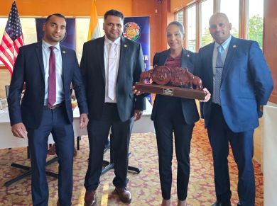 മികച്ച സേവനം കാഴ്ചവച്ച NYPD ഫോഴ്സ് ഇൻവെസ്റ്റിഗേഷൻ ഡിവിഷൻ്റെ കമാൻഡിംഗ് ഓഫീസർ ഇൻസ്പെക്ടർ രോഹൻ ഗ്രിഫിത്ത് , മലയാളി ഡെപ്യൂട്ടി ഇൻസ്പെക്ടർ ഷിബു മധു എന്നിവരെ ചടങ്ങിൽ ആദരിച്ചു.