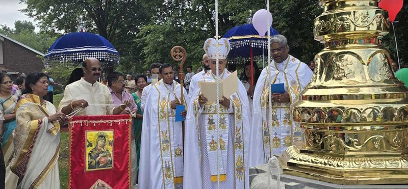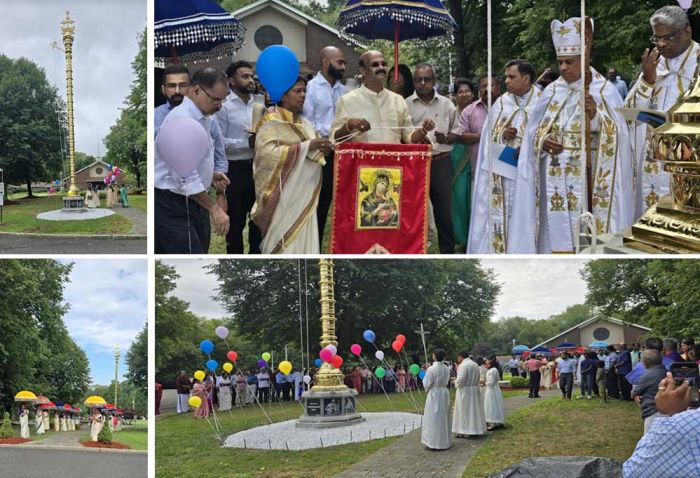 ന്യൂയോര്ക്ക്: ഭാരതീയ പാരമ്പര്യത്തിന്റെയും സീറോ മലബാർ സഭയുടെയും അഭിമാനം ഉയർത്തി റോക്ക്ലാന്ഡ് വെസ്ലി ഹില്സിലുള്ള ഹോളി ഫാമിലി സീറോ മലബാര് ചര്ച്ചിന്റെ കൊടിമരം ചിക്കാഗോ രൂപതാധ്യക്ഷന് മാര് ജോയി ആലപ്പാട്ട് വെഞ്ചരിച്ചു. ഇതേ തുടര്ന്ന് ഈമാസം 16,17,18 തീയതികളില് നടക്കുന്ന വി. കന്യകാമറിയത്തിന്റെ സ്വര്ഗാരോഹണ തിരുന്നാളിന് കൊടിയേറ്റവും നടന്നു.